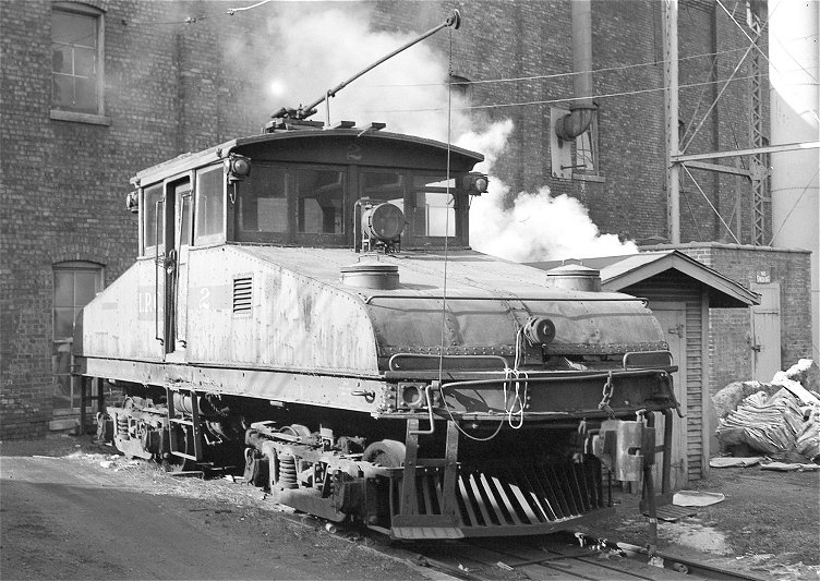 Upon moving to Bloomington, Illinois in 1954 we discovered that the Illinois Terminal's Peoria-Decatur line through Bloomington had been abandoned the year before. However a two-block section of South Madison Street remained under wire. Here the Illinois Power Company still used this ex-Illinois Traction steeplecab to switch coal hoppers from a siding on the New York Central's Peoria & Eastern branch to its city power plant adjacent to the tracks. The operation lasted for a few more years, and my brother took this photo of IPC No. 2 in February 1958.