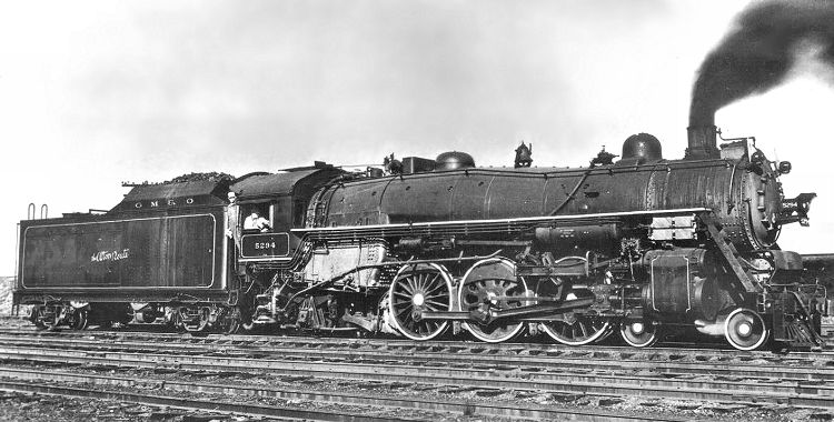 In a photo supplied by Gary Thompson of Normal, Illinois, Walter A. Peters captures a good broadside view of P-16 No. 5294. The location is likely the Ridgely terminal in Springfield, and the joint GM&O-Alton lettering on the tender establishes the date in the early post-merger era, 1947-48.