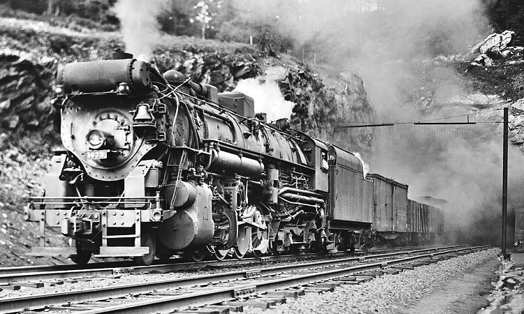 Berkshire No. 1435 blasts out of Stateline Tunnel in its namesake mountain range in 1930, in a photo from the collection of Carl Weber. The view is attributed to famed B&A engineer and photographer H. W. Pontin. This locomotive belonged to the A-1b class, ordered immediately upon delivery of the first group of B&A 2-8-4s and received from Lima Locomotive Works in 1926-27. While with dieselization most of the Berkshires were transferred to other NYC lines (and two were sold to the Tennessee, Alabama & Georgia), there is no record that No. 1435 left the B&A before being sent to the torch in 1949. The wires hanging down over the track were known as a "tell-tale," a device to warn a brakeman standing on a freight car that he was approaching an overhead obstruction; with the introduction of the train air brake system they became redundant, but many remained in place until well into the diesel era.