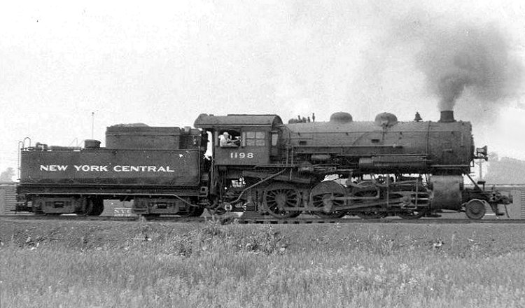 American Locomotive Company's Brooks Works built class G-46L Consolidation No. 1198 in 1914 as Kanahwa & Michigan No. 551 in class C-14. In 1924 the engine was renumbered to 9715 of K&M parent Toledo & Ohio Central, part of the New York Central System. In 1936 it received its final NYC number, as shown in this unprovenanced photograph from the 1940s supplied by Wayne Koch. 2-8-0s of class G-46L had specifications similar to those shown for No. 1162 in class G-46h, but weighed 244,000 pounds. Other specifications include approximately 3375 square feet of evaporative heating surface, 670 square feet of superheating surface, and a 55-square-foot grate area. The locomotive was torched in 1949.