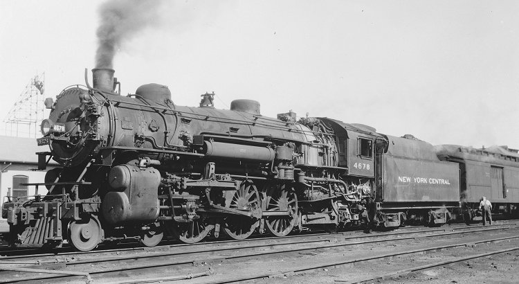Pacific No. 4678 stops at Elkhart, Indiana on October 13, 1947 in this scene captured by Lavergne G. Isaac of Constantine, Michigan and acquired via eBay. As built, the K-3q group was equipped with a booster which raised their tractive effort from 30,900 to 40,610 pounds. No. 4678, originally 3278, was dropped from the roster in 1952. The K-3 class had 79-inch drivers and 23½x26-inch cylinders, and sustained 200 p.s.i. of boiler pressure; for other dimensions see the commentary for No. 4683.