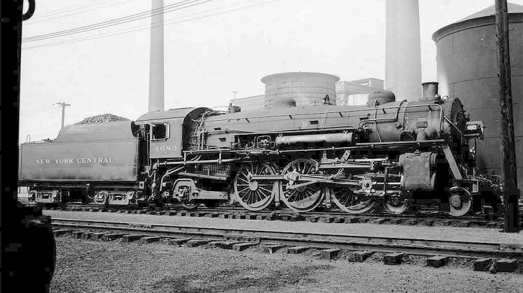 An unknown photographer captured this image of K-3q class 4-6-2 No. 4683 at Harmon, New York, in 1936 shortly after her renumbering from 3283; she was withdrawn from service and scrapped in 1952. Members of the booster-equipped K-3q class weighed 298,800 pounds. They had 3424 square feet of evaporative heating surface, 832 square feet of superheating surface, and a grate area of 57 square feet. For other specifications of the K-3 class consult the commentary for No. 4678. Wayne Koch provided the image from his collection.