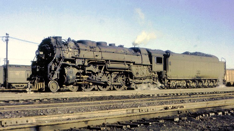 Color images of New York Central steam are comparatively rare. Because of the cost of color film and processing, ordinary railfans generally restricted their efforts to black and white. Many processed their own negatives in home darkrooms, not possible for color film. Those who were able to take color images before the demise of NYC steam usually used the low-speed slide film then available, which did not produce good results with a low-light or moving subject. This image of Hudson No. 5415 at Indianapolis, made available via John Sita, is a happy exception. It records the later modifications to the J-3a class, including the break in the originally straight running board necessitated by repositioning of the air reservoir and power reverse cylinder; the replacement of the Elesco feedwater heater with the Worthington type SA; and the substitution of the 14-wheel PT tender for the original six-axle type. Additionally, No. 5415 appears to have a combination of Boxpok and web-spoke drivers, the latter not being original equipment. The date of the photo is not specified, but No. 5415's grimy appearance suggests a time close to her retirement in 1956 after less than 19 years of service.