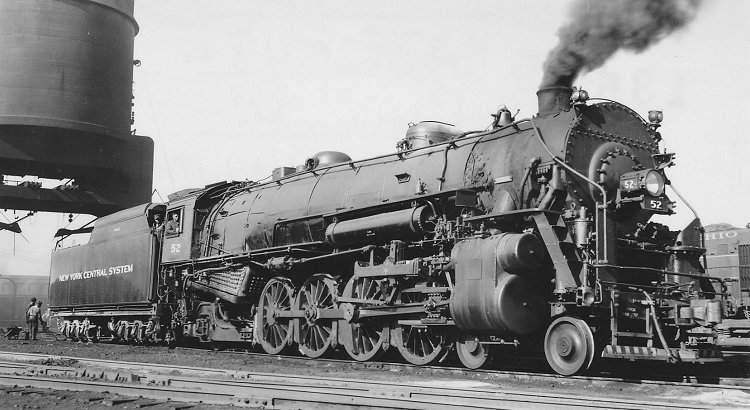 Peoria & Eastern 4-8-2 No. 52 is seen here on April 24, 1948 at the terminal in Peoria, a facility of the Peoria & Pekin Union that served railroads entering the "Peoria Gateway" (note the GM&O RS unit in the background). This image, attributed to Arthur B. Johnson of Springfield, Missouri, was purchased through eBay. No. 52, a member of the NYC's L-1c class, was the former No. 2633 and was assigned to the P&E in 1941. Built by Lima Locomotive Works in 1918, it received a new boiler in a 1923 rebuilding and differed in appearance from other members of the class although its specifications were similar to those shown for No. 47. This locomotive was retired and sold for scrap in 1951 after the Peoria & Eastern was dieselized.