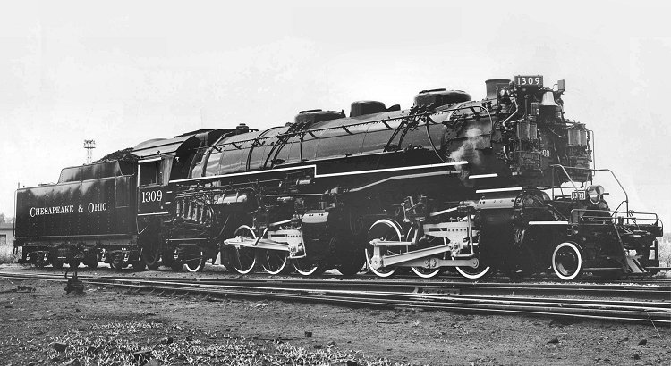 The last steam locomotives built for service in North America by a commercial builder were the ten Mallet compound 2-6-6-2s the Chesapeake & Ohio ordered from Baldwin Locomotive Works in 1948, to be delivered the following year. Classified H-6, Nos. 1300-1909 were built to essentially the same design as the C&O's 1920 engines of the same class which had reached the end of their service life. However, they featured many of the improvements Baldwin had since applied to its locomotives, including the overfire jets (to improve fuel combustion) visible in this photo taken when the locomotive was new from the builder. At the end of steam operations these newest 2-6-6-2s were stored, and in 1972 No. 1309, the last one built, was donated to the B&O Railroad Museum in Baltimore. In 2014 the locomotive was transferred to the Western Maryland Scenic Railroad, which has restored it to operating condition.