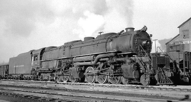 The American Locomotive Company delivered the D&H's first group of 4-6-6-4s, including this example, in 1940. (The 4-6-6-4s ALCo delivered to the Clinchfield beginning in 1942 were near-duplicates of the D&H design.) Locomotives of class J had four 20½x32-inch cylinders, 69-inch drivers, and a boiler pressure of 285 p.s.i. Their evaporative heating surface totaled 5389 square feet, their superheating surface 1681 square feet, and their grate area 108 square feet. They exerted 94,428 pounds of tractive effort and weighed 597,000 pounds minus tender. Information is lacking concerning the photographer and date for the above image supplied by William D. Volkmer. However, the industry in the background suggests a location in Lackawanna County, Pennsylvania, near Scranton.