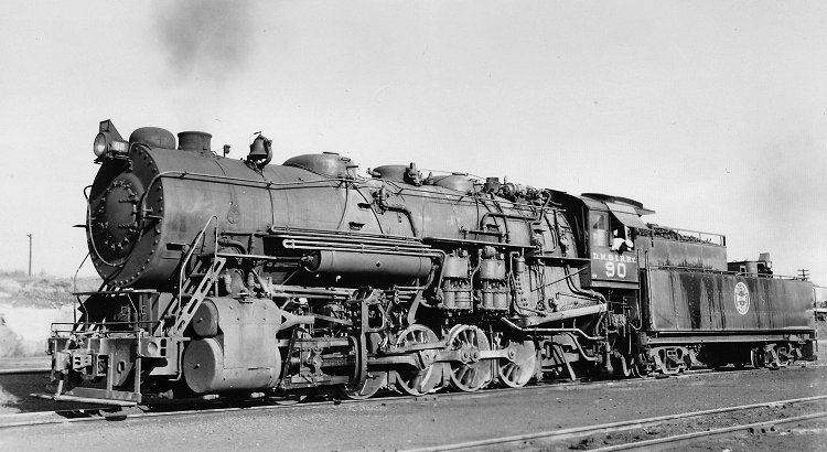 In 1928, Baldwin Locomotive Works delivered four powerful class S-6 0-10-0s to the Duluth, Missabe & Northern. They were designed to switch heavy ore trains arriving at the Duluth ore docks; they weighed 352,250 pounds and exerted 85,931 pounds of tractive effort. Driver diameter was 57 inches, cylinder dimensions were 28x30 inches, and boiler pressure was 245 p.s.i. With an 80-square-foot grate area, they had 4175 square inches of evaporative heating surface and 1170 square inches of superheating surface. They were originally equipped with tender boosters, which were removed by 1930 when the DM&N combined operations with the Duluth & Iron Range (forming the Duluth, Missabe & Iron Range in 1937). These hefty 0-10-0s continued serving in their original task, and in ore transfer runs, until the mid-1950s, the last one being retired in 1958. No. 90, first of the class, appears here in an unattributed and undated photo acquired through eBay.