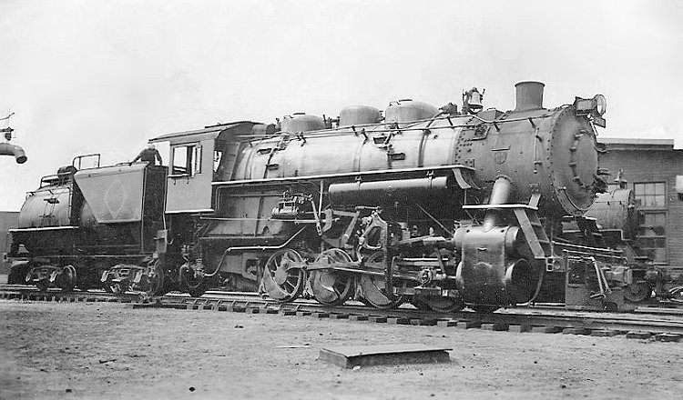 In 1927 and 1929, Baldwin Locomotive Works constructed 50 beefy 0-8-0 switch engines in class C-3 for the Erie Railroad. With 52-inch drivers, they had cylinder dimensions of 25x28 inches and a boiler pressure of 200 p.s.i. Their specifications included 2765 square feet of evaporative heating surface, 635 square feet of superheating surface, and 47 square feet of grate area. They weighed 212,000 pounds and exerted a tractive effort of 57,200 pounds. Like many Erie steam locomotives, they featured the Vanderbilt tender with its cylindrical water tank. Otherwise, their specifications and appearance were similar to those of the EJ&E 0-8-0 switcher previously described. This view of No. 201, for which no details are available, was contributed by Wayne Koch.