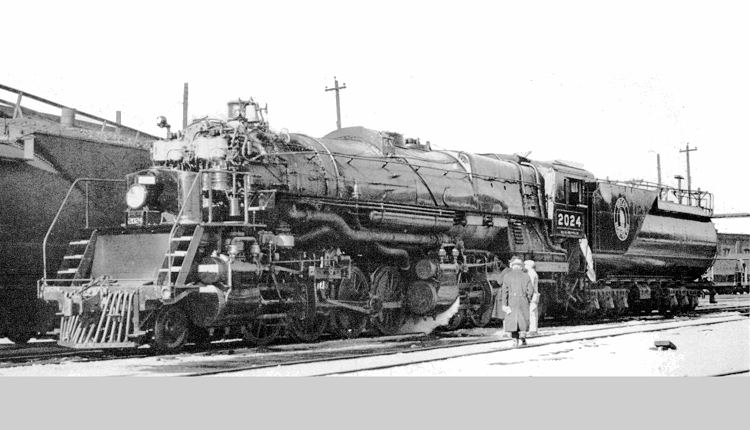 The Great Northern's class N-3 2-8-8-0 articulateds began life as class N-1 compound locomotives delivered by Baldwin Locomotive Works in 1912, but were converted to simple articulateds in the 1920s. In 1940-41 the railroad rebuilt them again, with new frames and roller bearings on the driving axles, and reclassified them. With four cylinders of 22x32 inches, 63-inch drivers, and 250 p.s.i. of boiler pressure, they developed 104,482 pounds of tractive effort. Their evaporative heating surface totaled 5805 square feet, their superheater surface 2,188 square feet, and their grate area (enlarged in the rebuild) 95 square feet. Their squared Belpaire firebox was typical of GN practice. These versatile oil-fueled engines hauled fast freight, heavy ore trains, and even passenger troop trains during World War II, in which duty they were said to be capable of up to 60 miles per hour. The Great Northern contributed this image of No. 2024, first of the rebuilds to be completed in 1940, to the 1951 edition of World Railways. Almost all these distinctive locomotives were retired by 1955.