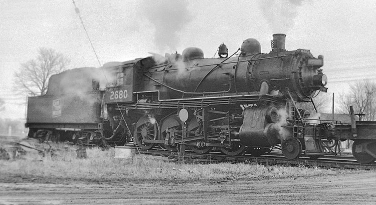 In one of my earliest rail photos, taken in the summer of 1952, Grand Trunk Western Consolidation No. 2680 pulls a flat car along a siding at Bellevue, Michigan. With 63-inch drivers, these class N-4-d engines had 23x32-inch cylinders and carried a boiler pressure of 180 p.s.i. They weighed about 211,200 pounds and mustered 41,111 pounds of tractive effort. No. 2680's original Grand Trunk number was 781; she was scrapped early in 1955.