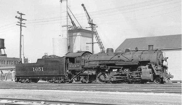 The Illinois Central owned more than 600 2-8-2 or Mikado type locomotives at various times. No. 1651 was erected in 1918 by Baldwin as the IC's No. 1803. She was renumbered to 1291 in 1919, and renumbered again to 1651 in 1954. As rebuilt in the railroad's Paducah shops she had the same specifications as No. 1362 preceding. This photo by the late Bruce Meyer was taken at Bloomington, Illinois in the summer of 1954. No. 1651 was sent to the scrapyard in 1960.