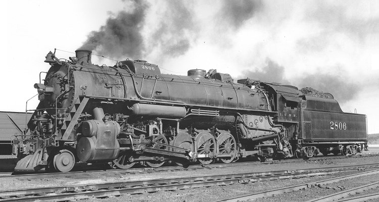Illinois Central 2-10-2 No. 2806 began life as No. 2914, delivered in 1921 by Lima Locomotive Works as part of a group of 100 locomotives, followed by another 25 engines in 1923. Between 1937 and 1942 the IC's Paducah Shops used the boilers from 2900-series 2-10-2s to construct 56 4-8-2s in the 2500 series, and other parts to build 15 2-10-0s and 41 2-8-2s. The remaining 2900-series 2-10-2s were also extensively rebuilt, but kept their wheel arrangement. The former No. 2914 was one of 20 engines rebuilt in 1943-45 and renumbered into the 2800 series. It appears here in a photo purchased from a eBay seller, attributed to the Tom Klinger collection, but no further details are forthcoming. No. 2806 was scrapped in 1960. For the dimensions of these 2800-series locomotives see the comments for No. 2817, following.
