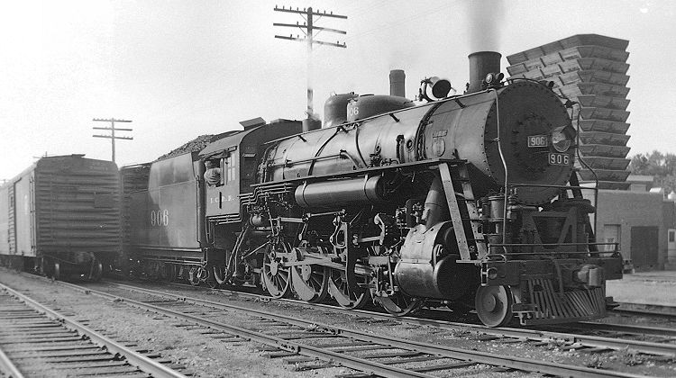 Illinois Central 2-8-0 No. 906 switches in the Bloomington, Illinois yard in September 1954. Originally numbered 989 when delivered in 1911 by Baldwin Locomotive Works, she received her later number in the 1943 Paducah Shops rebuilding of the 900-series Consolidations. As rebuilt, she had the same specifications as No. 902. This engine went to the scrapyard a year after I took this photo.