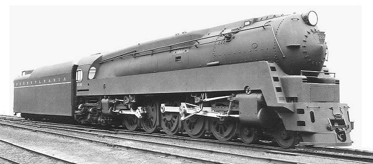 This Pennsylvania Railroad publicity photo shows the original streamlined appearance of Q1 No. 6130. It was one of the few North American locomotives built explicitly for freight service that were streamlined. (Stretching the concept to include dual service because of wartime restrictions, other examples might include the wartime Southern Pacific GS-5 and GS-6 4-8-4s and the Western Pacific GS-64 4-8-4s; the semi-streamlined Canadian Pacific "Selkirk" 2-10-4s were used in passenger service.) The Q1's bullet nose was later removed for ease of maintenance, replaced by the conventional flat smokebox front.