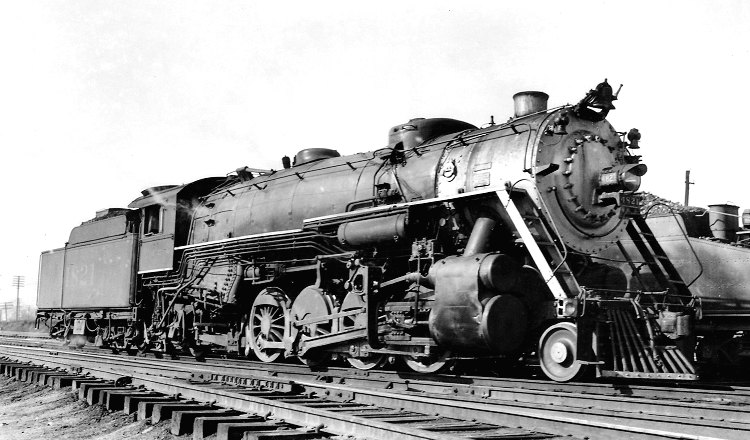 The Southern Railway's class Ms-4 2-8-2s were the railroad's mainstays for fast freight service through World War II, and occasionally hauled passenger trains. Erected by American Locomotive Company and Baldwin Locomotive Works between 1923 and 1928, they followed the USRA heavy Mikado design with improvements. No. 4821, seen here at Charlotte, North Carolina on June 29, 1938 (photographer unnamed), belonged to the first group that came from ALCo's Richmond works in 1923. With cylinder dimensions of 27x32 inches, they sustained a boiler pressure of 200 p.s.i. and rolled on 63-inch drivers. For other specifications consult the commentary for No. 6350 of the CNO&TP below. Members of No. 4821's 1923 group were equipped with the Baker valve gear, and online left-side photos of other members of the group show that they were equipped with the Worthington type BL feedwater heater.