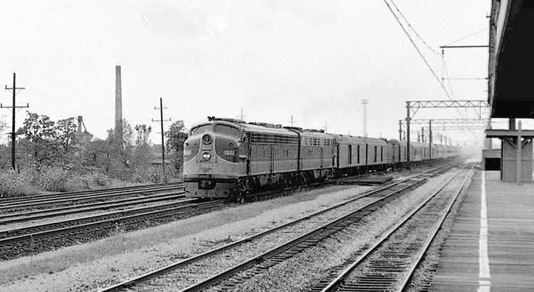 Central of Georgia EMD E-8A 812 heads the Seminole into Chicago on the Illinois Central main line in 1961. The Seminole was operated jointly by IC, CofG and the Atlantic Coast Line. E-8A 812, painted in IC livery for the Seminole power pool, apparently has "Central of Georgia" on the IC's diamond herald.